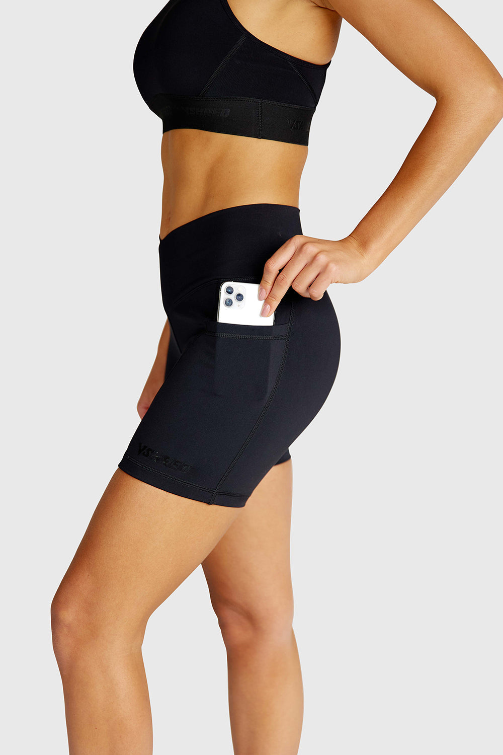 Meet your new must have bike short! Cut from our softest fabric ever, the Essential Pocket Short features our signature V crossover waistband that was specifically designed to flatter and slim all body types. 360 degree movement, the perfect short for yoga, pilates, and other workouts that require no restriction. With pockets deep enough for your phone on each leg, you can take this short from pilates to running errands, all without needing a bag. Made from our signature Essential fabric, our Essential Pocket Short features 4 way stretch and moisture wicking technology sure to keep you cool and comfortable all day long.